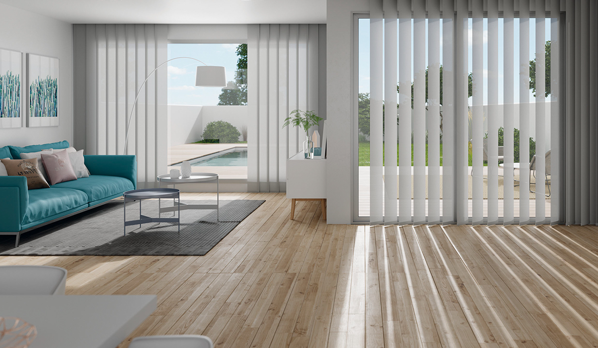 Soluciones decorativas y técnicas: cortinas enrollables, venecianas de madera o aluminio, plisadas y verticales con opción motorizada wifi.